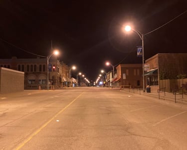 Pic by Mike Hofer of Smith Center, KS main street facing South at night. Smith Center, KS population ~1,570